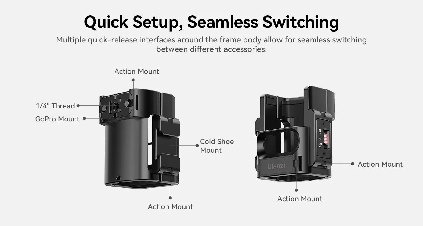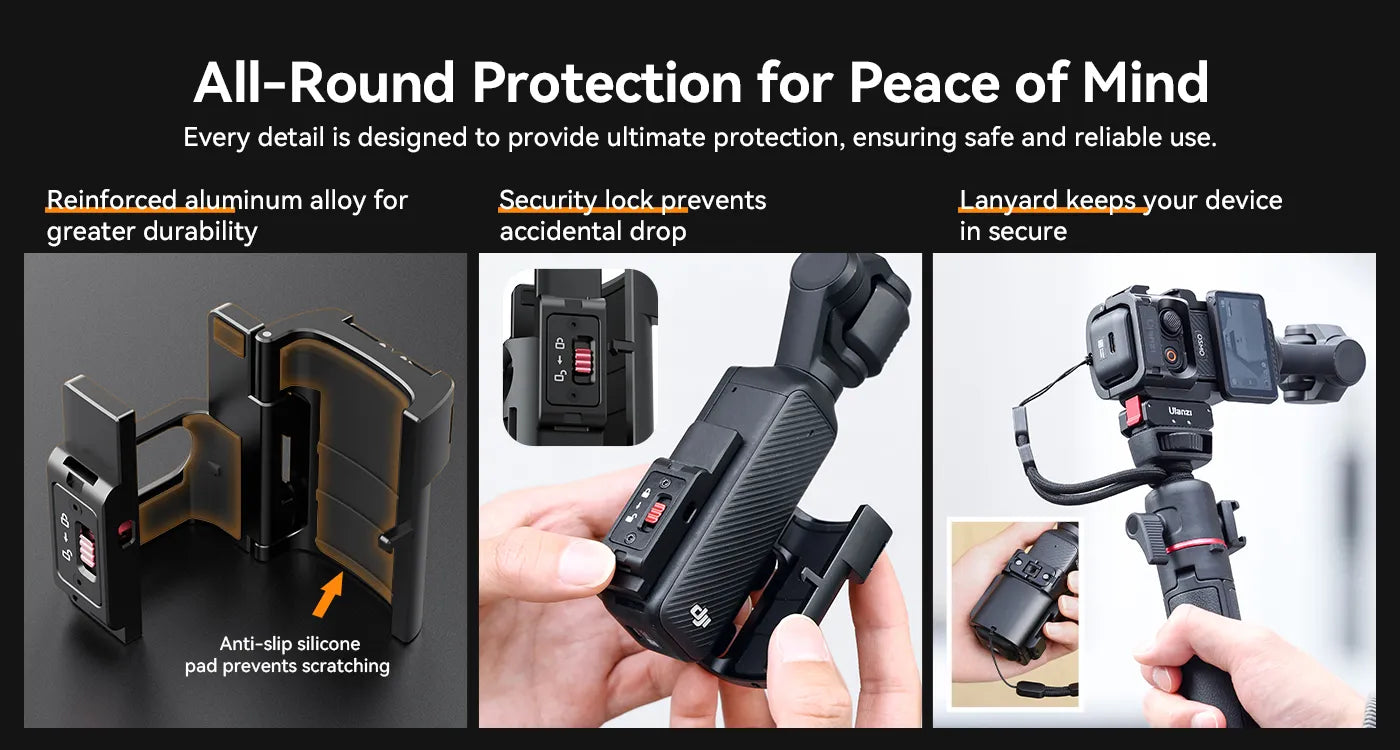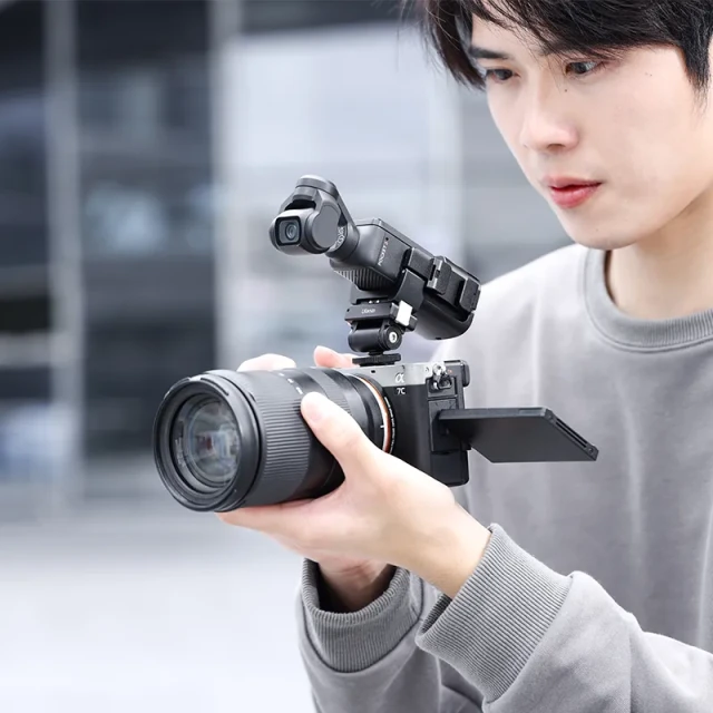 El adaptador de extensión Ulanzi PK-06 C014 es un soporte resistente de aleación de aluminio que mejora tu dispositivo DJI Osmo Pocket 3. Gracias a su seguro de giro, añade una rosca de 1/4 de pulgada y soportes para cámaras de acción, lo que permite grabar con fluidez tanto en horizontal como en vertical. Es compatible con trípodes, soportes para bicicleta y otros dispositivos, y permite a los creadores alimentar su equipo sin interrumpir la grabación. Compacto, resistente y versátil: este adaptador es imprescindible para cineastas móviles y vlogueros.