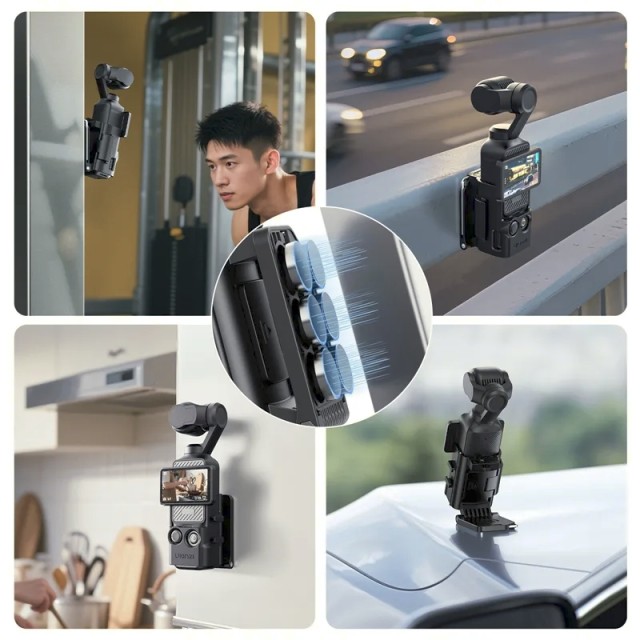 El soporte magnético extensible Ulanzi PK15 Pocket 3 es un soporte magnético universal diseñado para el Pocket 3, que permite tomar fotografías sin necesidad de usar las manos en paredes, mesas o superficies metálicas. Permite ajustar varios ángulos y acoplar accesorios, mientras que todos los controles siguen siendo totalmente accesibles.