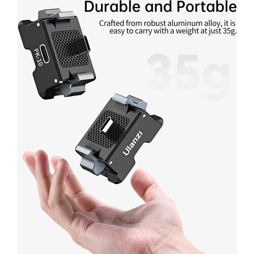 Mejora tu flujo de trabajo con la DJI Osmo Pocket 3 gracias a la base Ulanzi PK-10 USB-C, una solución de fijación de dos pines fabricada con precisión que te garantiza la alimentación y la disponibilidad para grabar. Fija la base al Pocket 3 en cuestión de segundos gracias a su seguro sistema magnético y, a continuación, conecta cualquier cable USB-C para cargar la cámara sin necesidad de retirar el soporte, lo que resulta ideal para time-lapses prolongados, vlogs o retransmisiones en directo. Este adaptador compacto está fabricado en una resistente aleación de aluminio con elementos de silicona para un mejor agarre y protección. Ocupa un espacio mínimo y permite cambiar rápidamente entre gimbals, trípodes, jaulas o soportes de mano. Con un peso de tan solo 35 g y unas dimensiones de 2,44 x 2,44 x 1,18 pulgadas, cabe fácilmente en cualquier bolsa para cámara. El puerto USB-C integrado permite cargar y utilizar la cámara al mismo tiempo, lo que elimina los tiempos de inactividad y garantiza que no te pierdas ninguna toma.