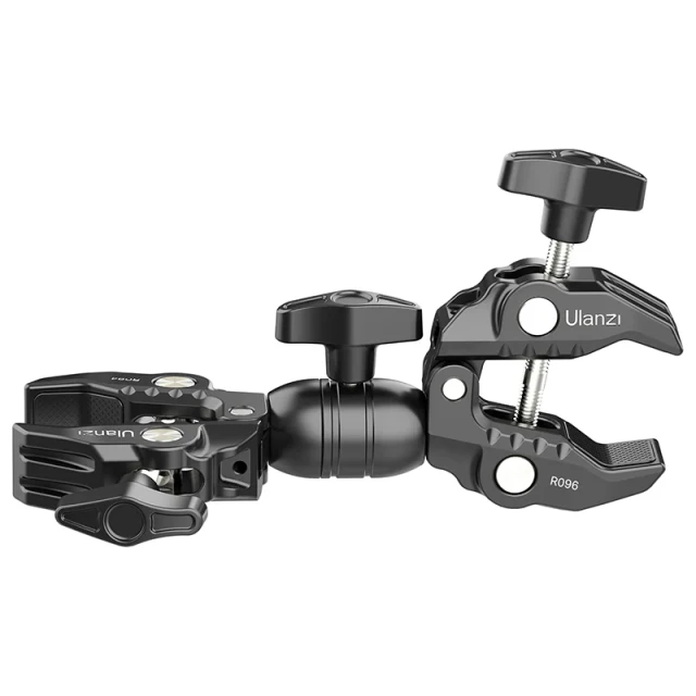 Fijación segura en cualquier lugar. Fija tu equipo con total seguridad gracias al Ulanzi R096. Gracias a sus dos abrazaderas giratorias de 360° y a su robusta estructura metálica, se adhiere a superficies con un diámetro de entre 12 y 58 mm mediante almohadillas de silicona antideslizantes. Ideal para trípodes, soportes de iluminación, barandillas o bicicletas. Soporta hasta 1,5 kg: es compacto, resistente a la intemperie y está diseñado para creadores que viajan con frecuencia.