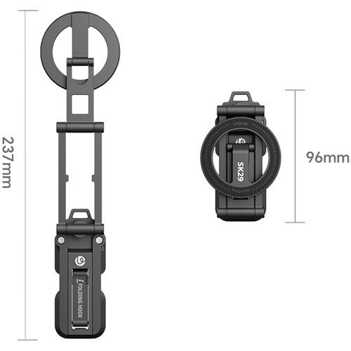 El soporte plegable para móvil Ulanzi SK29 es un soporte compacto y versátil para smartphones que funciona como minitrípode, asa o soporte de sujeción. Gracias a su inclinación y giro ajustables y a su base con rosca de 1/4"-20, es ideal para vlogs, tutoriales en línea o para ver el móvil sin necesidad de sujetarlo con las manos en cualquier lugar.