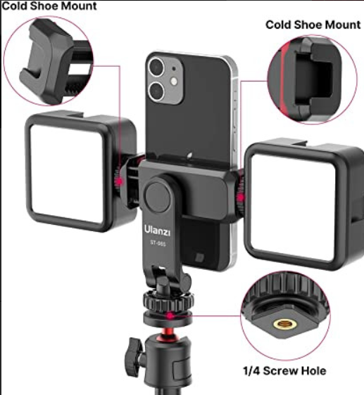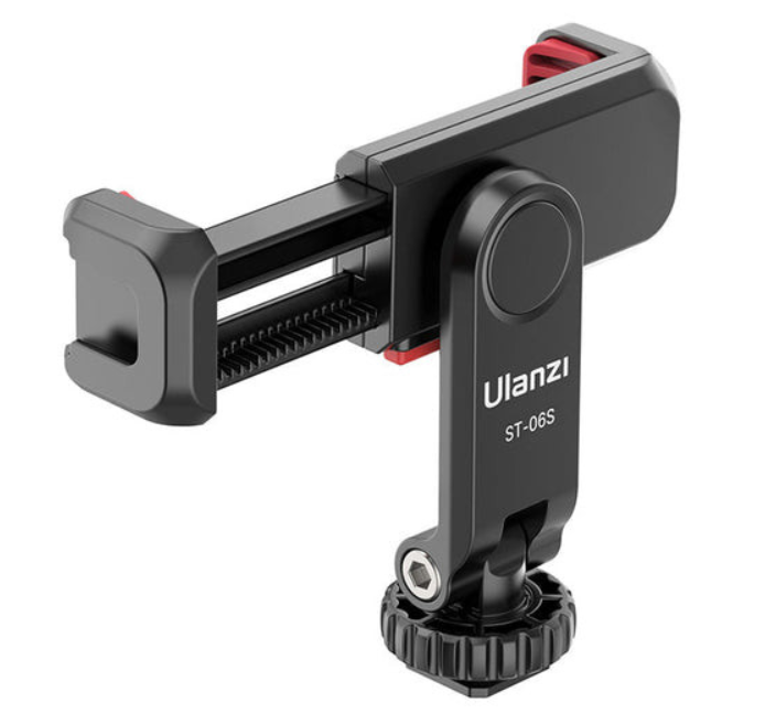 El soporte multifuncional para smartphone Ulanzi ST-06S es un soporte mejorado y muy versátil diseñado para fotógrafos, videógrafos y creadores de contenido que buscan una forma flexible de utilizar su smartphone junto con cámaras, trípodes u otro equipo de filmación. Este soporte compacto está equipado con dos soportes de tipo cold shoe y un conector roscado estándar de 1/4", lo que te permite fijarlo de forma segura a una cámara, un trípode, un palo selfie o un estabilizador. También permite fijar fácilmente micrófonos, luces u otros accesorios a los soportes de tipo cold shoe para una mayor funcionalidad.