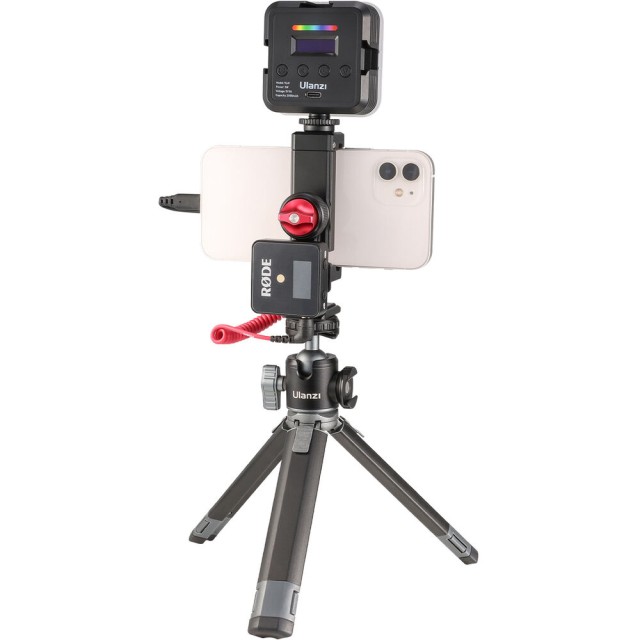 El Ulanzi ST-27 IronMan IV Metal Phone Tripod Mount Clip es un soporte universal para smartphones con rotación de 360°, varios puertos para zapatas y roscas, y una pinza con resorte, ideal para vlogs, retransmisiones en directo o la grabación de vídeos con el móvil.