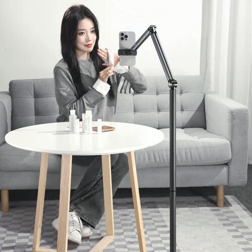 Graba tu imagen, tu entorno de trabajo o lo que haya sobre tu mesa con precisión y flexibilidad gracias al soporte de suelo ajustable para móvil Ulanzi TH07 Overhead. Este soporte, con una altura máxima de 145 cm y ajustable entre 79,5 cm y 145 cm, facilita la grabación creativa de vídeos, tutoriales, demostraciones culinarias, manualidades o retransmisiones en directo.