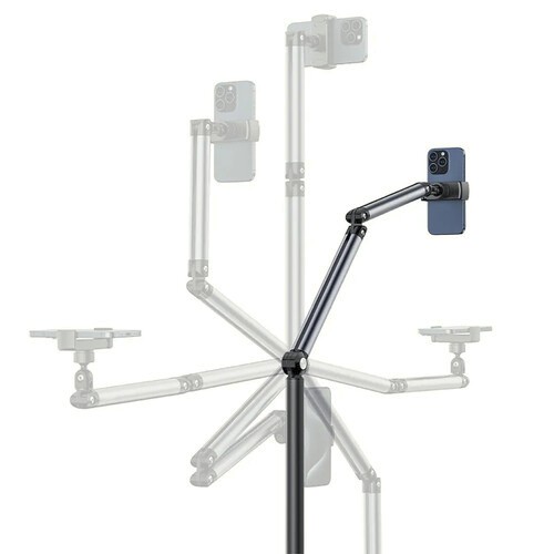 Los brazos giratorios dobles de 11,8 pulgadas permiten un posicionamiento versátil: un brazo gira 270°, el otro 360°, y se pueden ajustar y fijar fácilmente con las llaves Allen incluidas. Tu smartphone queda fijado de forma segura en una abrazadera de silicona, apta para dispositivos con un ancho de entre 2,36" y 3,62", y gira 360°, para que puedas cambiar fácilmente entre la orientación vertical y horizontal.
