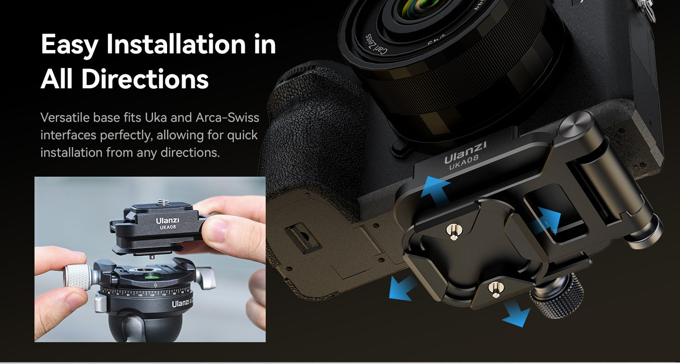 Fácil instalación en todas las direcciones. Se adapta perfectamente a las interfaces Uka y Arca-Swiss. Instalación rápida desde cualquier dirección.