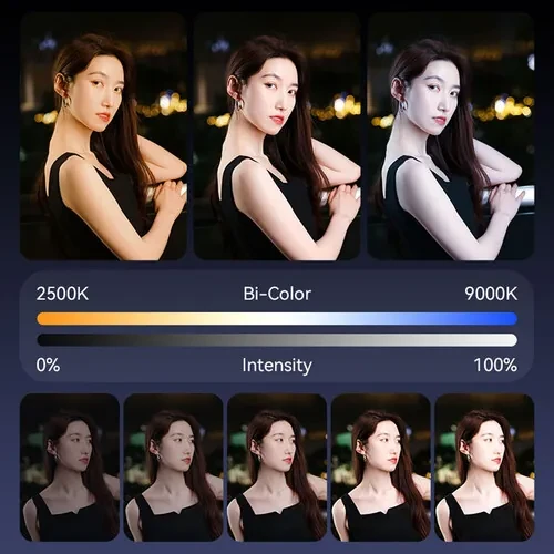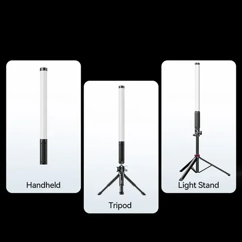 La Ulanzi VL119 RGB LED Light Wand es una solución de iluminación versátil y ligera diseñada para fotógrafos, camarógrafos y creadores de contenido. Está equipada con 114 LED de alto rendimiento cromático, tiene una precisión cromática CRI 95 y su amplio ángulo de emisión de 120° proporciona un brillo de hasta 105 lux a 1 metro. Los controles integrados permiten ajustar con precisión el color, la intensidad (de 0 a 100 %) y la temperatura de color mediante la pantalla LCD integrada. Se alimenta mediante una batería recargable integrada que proporciona hasta 70 minutos de funcionamiento continuo a plena potencia y admite la recarga a través de USB-C durante su uso. Pesa menos de media libra y mide 19,7 pulgadas. Emite una luz amplia y uniforme, ideal para retratos, retransmisiones en directo e iluminación ambiental.