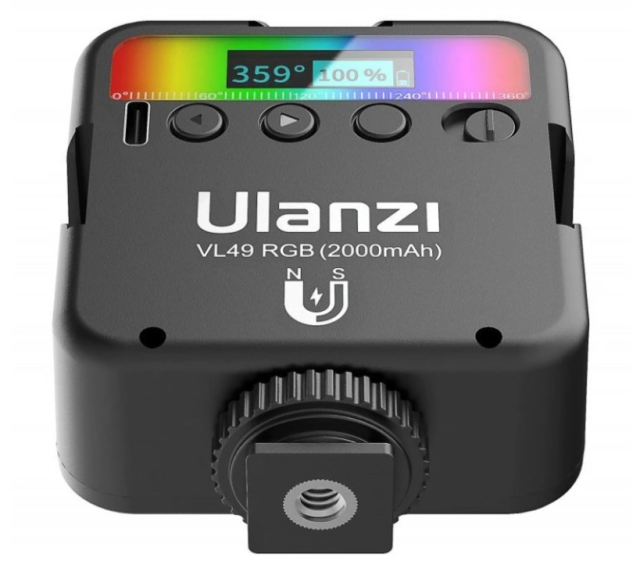 La luz LED Ulanzi VL49 RGB (negra) es una solución de iluminación potente y compacta diseñada para fotógrafos, camarógrafos, vlogueros y creadores de contenido. A pesar de su pequeño tamaño, esta luz LED de 6 W ofrece un rendimiento impresionante con control total de los colores RGB (HSI), temperatura de color ajustable en un rango de 2500 K a 9000 K y 13 efectos de luz especiales integrados. Ya sea que fotografíes retratos, productos, objetos macro, retransmisiones en directo o videoconferencias, el VL49 ofrece opciones de iluminación flexibles y creativas.