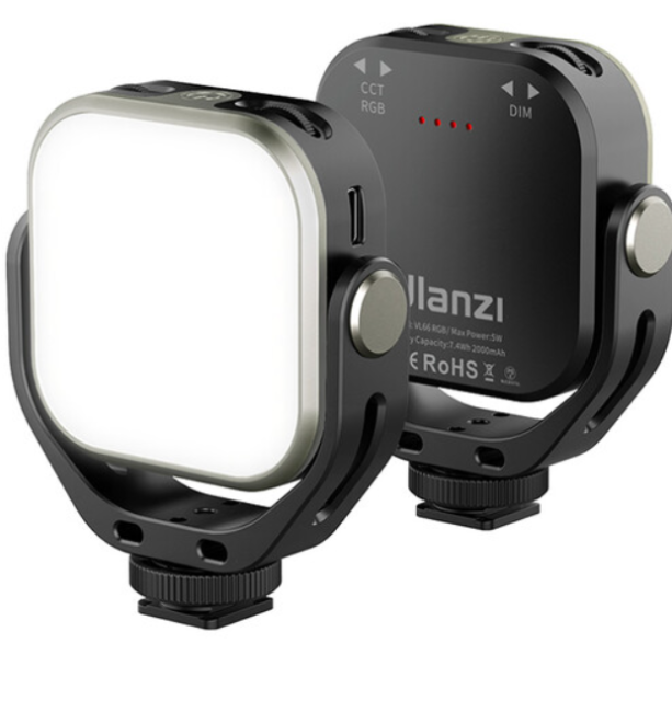La luz LED Ulanzi VL66 RGB es una herramienta compacta, portátil y potente para creadores, que ofrece una iluminación RGB y bicolor muy viva en un panel de 3,6 x 3,1 x 1 pulgada y con un peso de tan solo 3,6 onzas. Con una temperatura de color ajustable de 2500 K a 6500 K, control total del RGB y hasta 112 lux a 3,3' (o 450 lux a 1,6'), alcanza una precisión CRI de 95 para colores fieles en retransmisiones en directo, vlogs o fotografías. Se alimenta mediante una batería recargable integrada de 2000 mAh, que proporciona 120 minutos de funcionamiento a pleno brillo. Cuenta con controles intuitivos para ajustar la CCT y el brillo, giro de 360° mediante un soporte en forma de U y fijación universal mediante un adaptador para flash frío o una rosca de 1/4"-20, además de carga USB-C para mayor comodidad durante los desplazamientos.