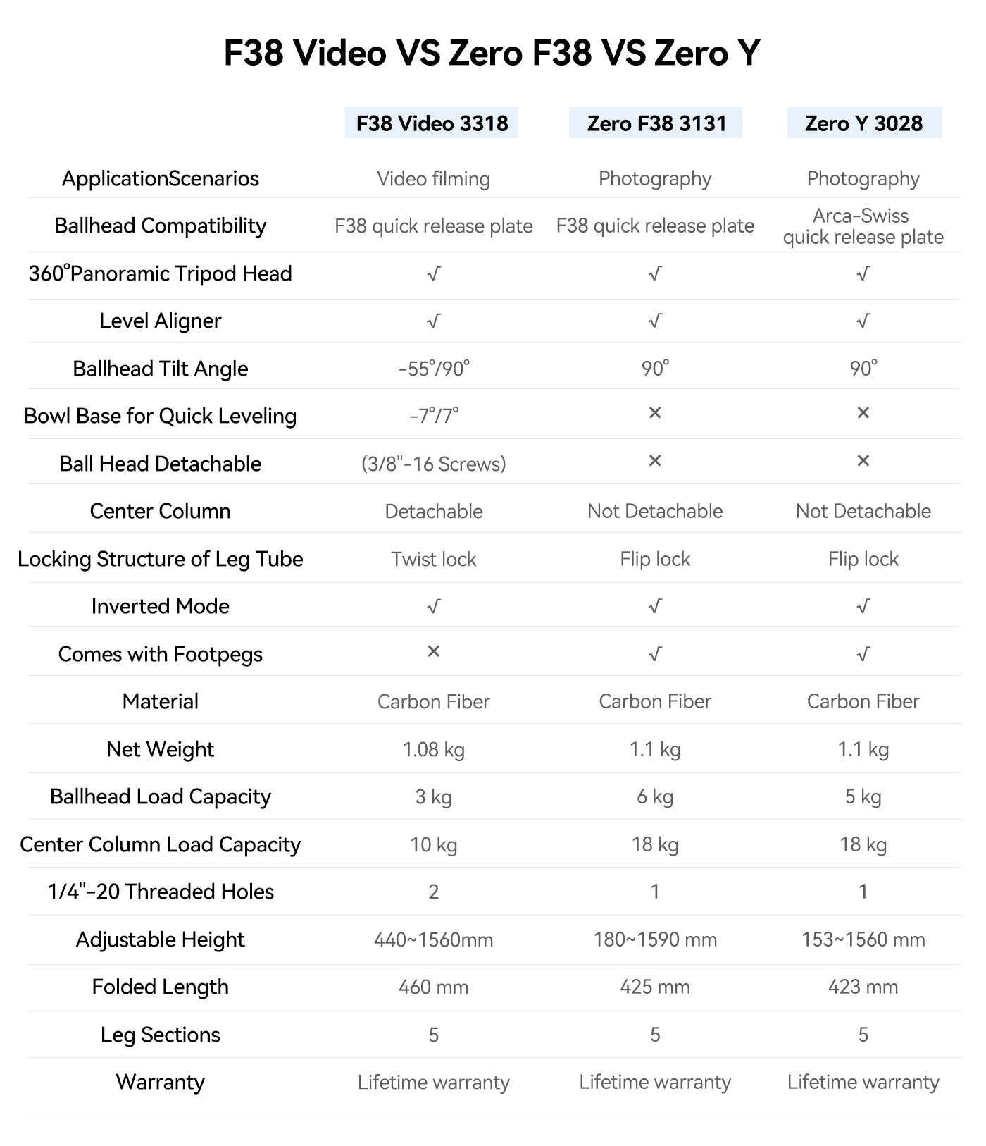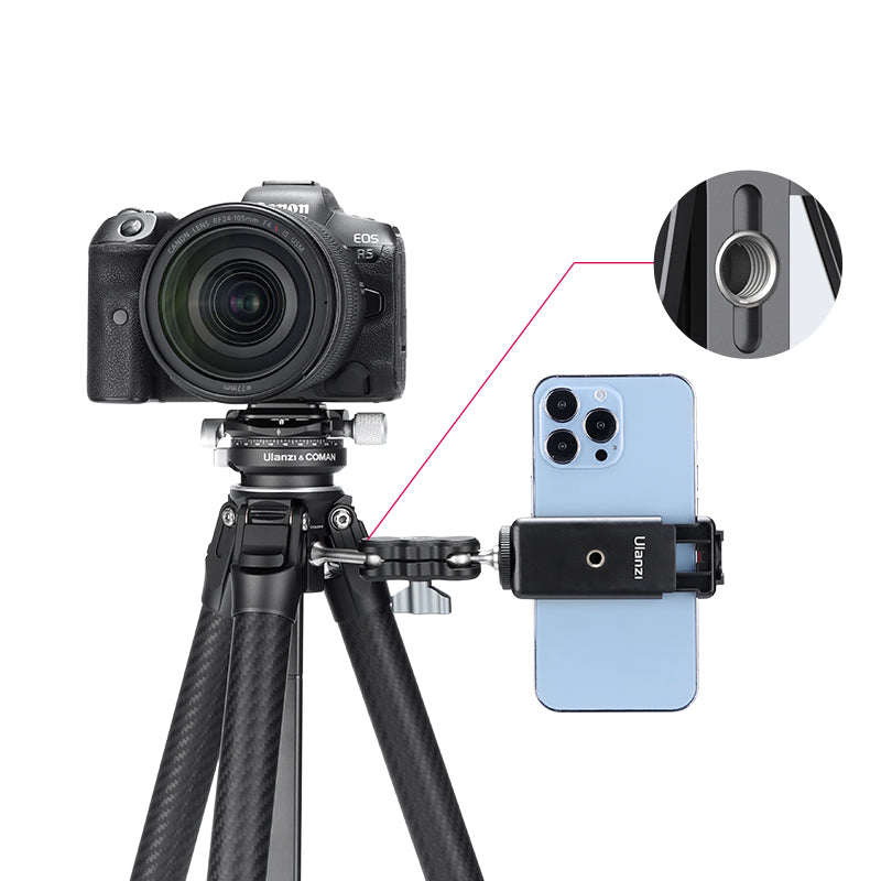 - La rótula del trípode no es desmontable. Si desea cambiar la rótula del trípode, le recomendamos que adquiera el accesorio para el trípode de viaje Ulanzi F38 Quick Release: columna central de 1/4.