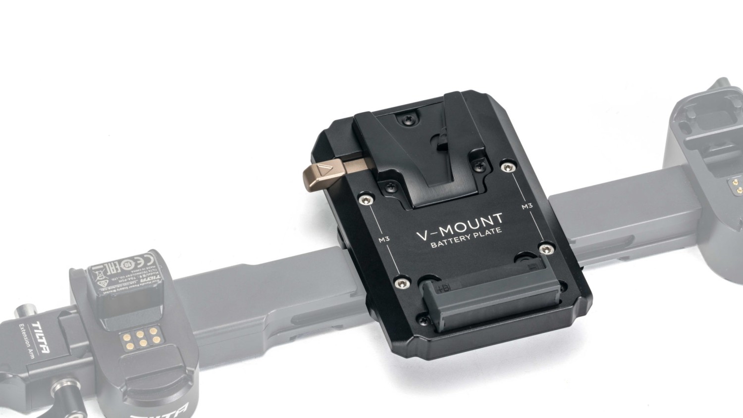 Esta placa para baterías V-Mount se acopla directamente al soporte de alimentación Dual Handle para RS2 y permite alimentar el gimbal con baterías de mayor capacidad sin necesidad de cables externos.