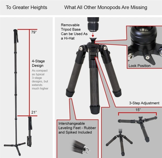 El VariZoom CHICKENFOOT-AL es un monopié profesional y ligero de aluminio con trípode plegable que ofrece una versatilidad, estabilidad y rapidez de ajuste excepcionales para la grabación de vídeos y la fotografía.