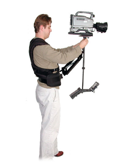 El paquete incluye un chaleco ergonómico con acolchado torácico moldeado, un sistema de 4 puntos de sujeción en el torso y una placa torácica de altura ajustable que soporta cómodamente equipos de cámara pesados durante largas sesiones de rodaje. El trípode estabilizador también integra un monitor en color de 5" (estándar NTSC; PAL o 7" opcional), que sirve tanto como visor externo como contrapeso para el equilibrio vertical. El monitor y la batería son totalmente ajustables para un ajuste fino del equilibrio y el funcionamiento.