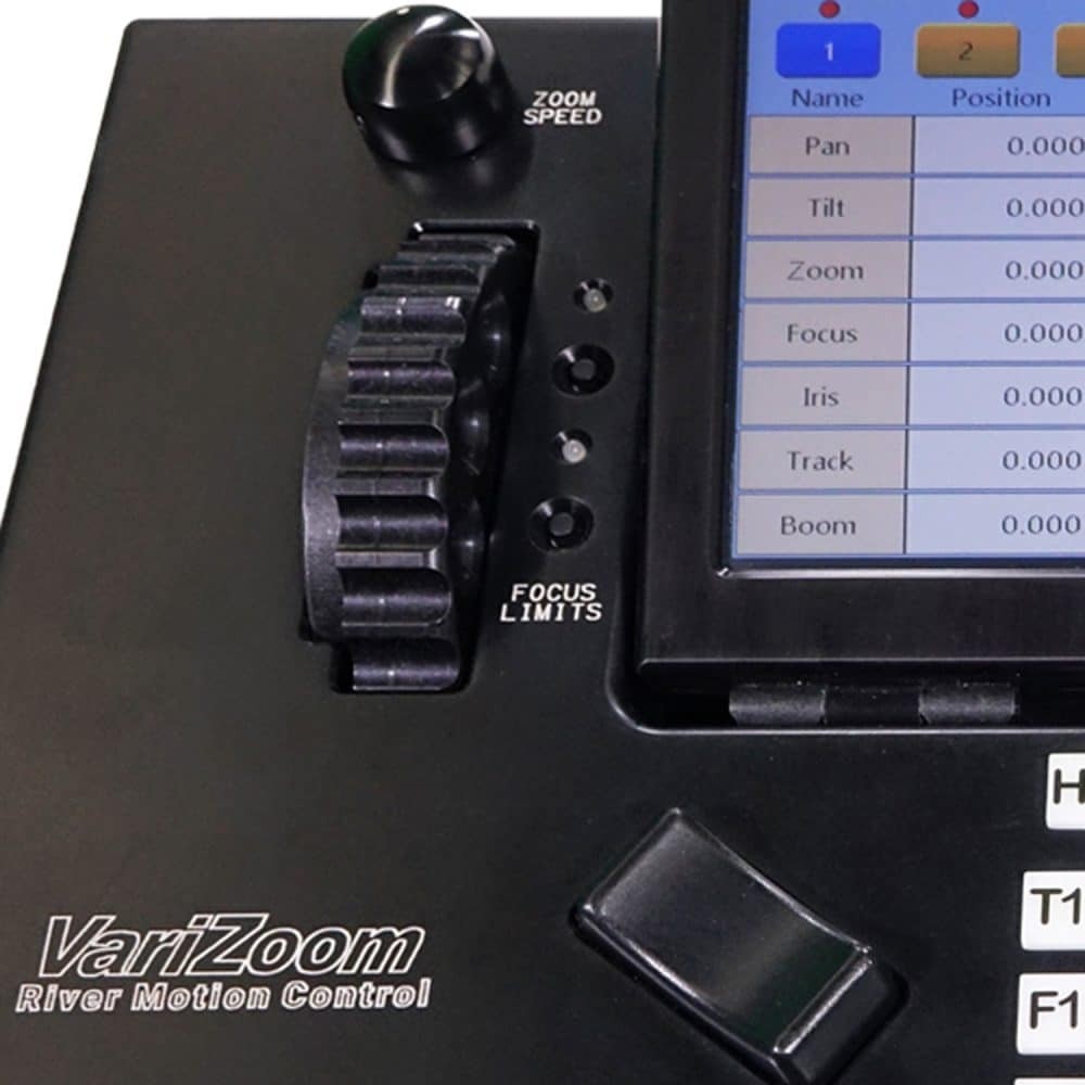La consola VariZoom River Control es un sistema de control de 7 ejes para 4 cámaras con múltiples cabezales que permite un control preciso de los ejes de panorámica, inclinación, zoom, enfoque, iris, track/dolly y boom con calidad cinematográfica. La consola River es ideal para vídeos corporativos, retransmisiones deportivas, conciertos, iglesias y eventos en directo. Es compatible con los cabezales remotos VariZoom CinemaPro, CP Micro y CP JR, y ofrece un control intuitivo mediante pantalla táctil para configuraciones con uno o varios operadores.