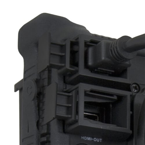 Entrada/salida HDMI con cierres de seguridad para los cables