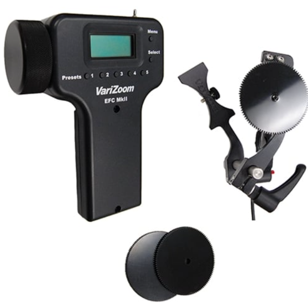El VariZoom VZEFC2 es un sistema electrónico universal para el control del enfoque y la apertura, desarrollado para objetivos de televisión Canon y Fujinon. Es ideal para grúas, plataformas rodantes u otras aplicaciones a distancia. Ofrece tanto un control de enfoque totalmente manual como preajustes programables que permiten hasta cinco puntos de enfoque predefinidos para cambios rápidos y precisos durante la grabación.