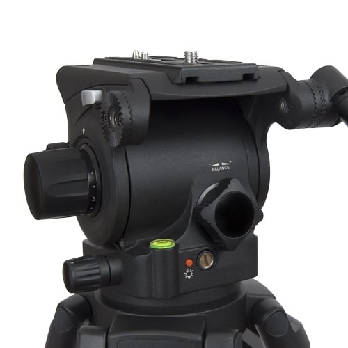 Los ajustes de inclinación y giro se pueden regular mediante mandos giratorios suaves con bloqueo y marcas de índice para un control preciso, mientras que los contrapesos ajustables garantizan que el cabezal pueda manejar fácilmente diferentes pesos de cámara. El modelo FH100 también está equipado con un nivel de burbuja retroiluminado para un ajuste rápido en condiciones de poca luz.