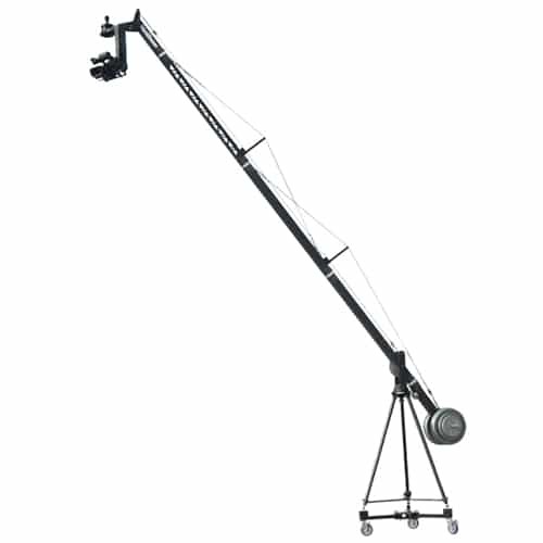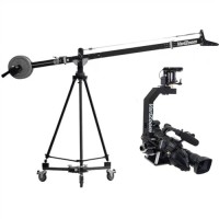 Se incluye el carro DCR200 con ruedas de goma macizas, frenos de pie y bloqueo de patas para una sujeción segura del trípode. El trípode de la grúa TCR100 está fabricado a medida para ofrecer la máxima estabilidad y está equipado con una placa base mecanizada, tubos resistentes y patas niveladoras de gran tamaño. El sistema de grúa es compatible con cámaras de hasta 30 libras y admite un movimiento vertical de hasta 16'6", con una altura máxima de la cámara de 18'3".