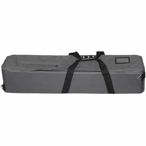El espaciador central aumenta la rigidez en terrenos irregulares, mientras que los seguros botones de bloqueo para el ajuste de altura garantizan un ajuste rápido y fiable. Las patas de goma blanda permiten un uso seguro tanto en superficies interiores como exteriores. Para su transporte y protección, se incluye en el paquete una maleta de transporte acolchada.