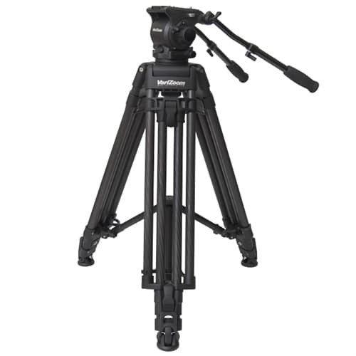El VariZoom VZTKC100C combina el trípode de carbono TC100C con el cabezal fluido FH100, creando así un sistema de trípode resistente, ligero y portátil. Está diseñado para cámaras de hasta 10 kg de peso y es ideal para ENG, estudio y producción cinematográfica. Ofrece un giro y una inclinación fluidos, altura ajustable y compatibilidad con sistemas de dolly para una filmación versátil.
