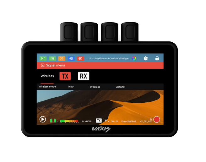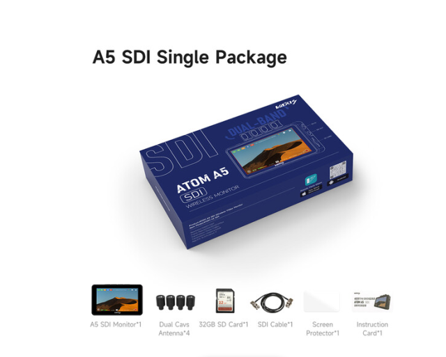 El Vaxis Atom A5 SDI es un monitor inalámbrico compacto con pantalla táctil de 5,5" y resolución de 1920 x 1080, con función TX/RX integrada, que admite un alcance de transmisión de hasta 300 metros dentro del ecosistema Atom, cuenta con entradas SDI/HDMI y salidas en bucle, grabación MP4 integrada en microSD, panel de batería dual de la serie L, brillo de 2000 cd/m², antenas intercambiables, sincronización de código de tiempo, compatibilidad con 3D LUT y herramientas avanzadas de CINE OS, incluyendo osciloscopios y peaking para una monitorización precisa en el plató y seguimiento inalámbrico del enfoque.