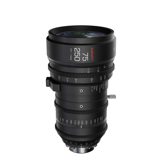El objetivo CHIOPT XTREME 75-250 mm T3.2 Compact Zoom Cine Lens (montura PL) es un teleobjetivo de formato completo diseñado para la cinematografía profesional, que ofrece una imagen nítida y sin distorsiones con una apertura constante de T3.2, una respiración mínima y un precioso bokeh redondeado de 11 láminas. El color y el peso están a juego con el objetivo zoom XTREME de 28-85 mm. El objetivo está equipado con una montura PL intercambiable (EF/E opcional), una resistente estructura metálica, una escala de enfoque dual y un rango de enfoque de 288° para un control preciso.