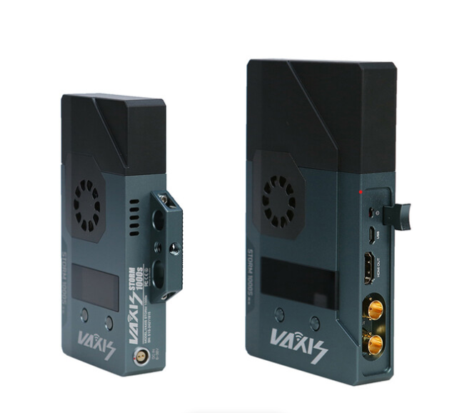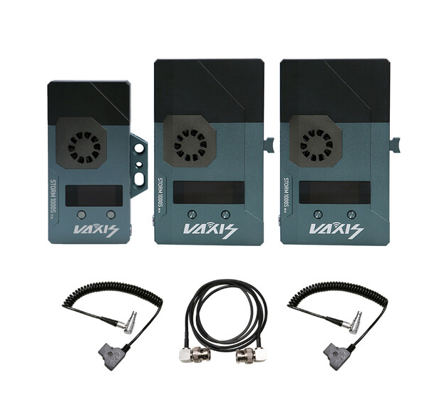 El kit de transmisor inalámbrico Vaxis Storm 1000S + receptores duales ofrece vídeo sin pérdida visual en resolución 1080p con una latencia inferior a 1 ms y un alcance de 1148' en línea de visión, con interfaz 3G-SDI y E/S HDMI con salida en bucle en el transmisor, dos salidas SDI/HDMI en el receptor, compatibilidad con multidifusión, conversión cruzada, paso de código de tiempo/metadatos y funcionamiento sin interferencias en 20 canales en las bandas de 5,1 a 5,9 GHz.