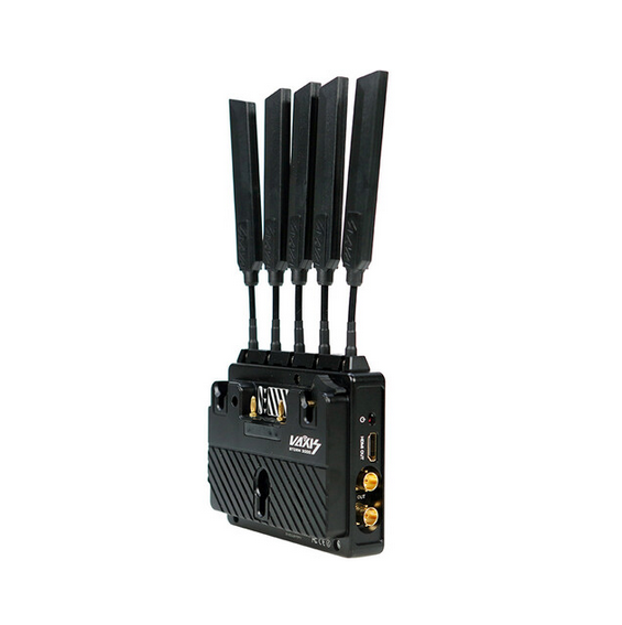 El receptor inalámbrico Vaxis Storm 3000DG (Gold Mount) recibe vídeo sin pérdida visual y sin comprimir en resolución 1080p60 con latencia cero desde cualquier transmisor Vaxis Storm 3000 a una distancia de hasta 3000 pies en línea recta. Está equipado con dos salidas 3G-SDI, una salida HDMI 1.3 y audio integrado de 4 canales con 20 canales seleccionables de 40 MHz en la banda de 5,1–5,9 GHz para un funcionamiento sin interferencias. El receptor incluye cifrado AES-128, compatibilidad con código de tiempo y una pantalla LED nítida para supervisar el estado y los canales. Se alimenta mediante una placa de batería fija Gold Mount o de 7-36 VCC a través de un conector LEMO de 2 pines, y ofrece cinco puertos de antena RP-SMA y un soporte de 1/4"-20 para una integración fluida en flujos de trabajo de retransmisión, directo o cinematográfico.