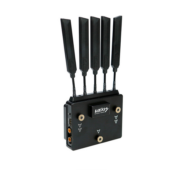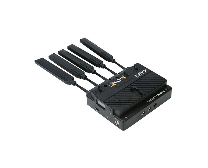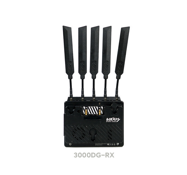 El receptor inalámbrico Vaxis Storm 3000DG (Gold Mount) ofrece vídeo sin comprimir en resolución 1080p60 con latencia cero desde una distancia de hasta 3000 pies, con salidas duales 3G-SDI y HDMI 1.3, cifrado AES-128, funcionamiento de 20 canales a 5 GHz y una placa Gold Mount integrada para configuraciones profesionales con varios receptores.