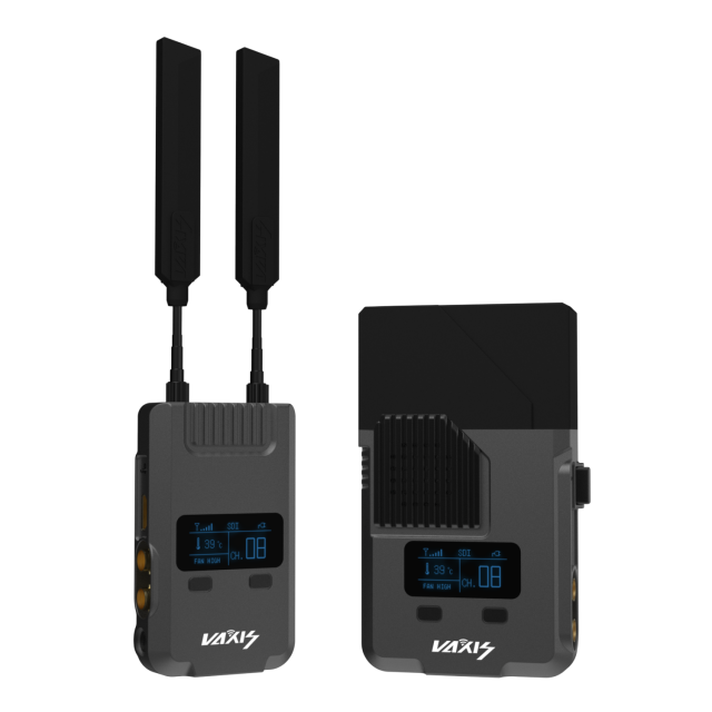 Vaxis Storm 800: Sistema de vídeo inalámbrico con latencia cero. Transmisión de vídeo HD sin comprimir en resolución 1080p hasta una distancia de 244 m con un retraso inferior a 1 ms. Transmisión profesional SDI/HDMI para cineastas, emisiones y producciones en directo. Incluye compatibilidad con código de tiempo y opciones de conexión L-series/V-mount. Una soluciónfiable para la monitorización de vídeo en el plató.