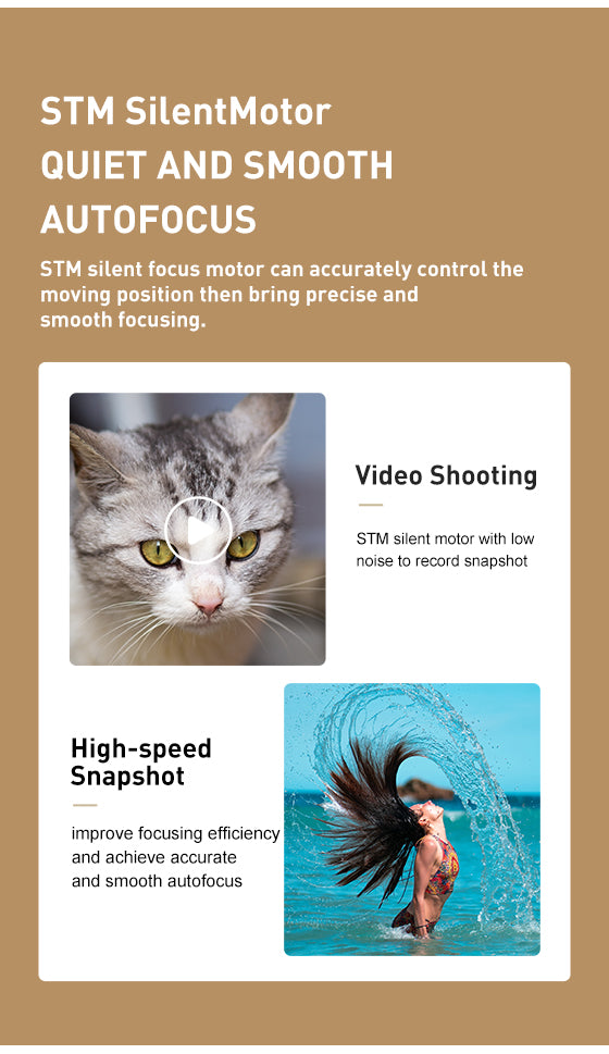 Objetivo luminoso de enfoque fijo para la montura Sony E. Gracias a su diseño con elementos ELD y a los tratamientos multicapa de todas las lentes, ofrece imágenes nítidas con un mínimo de imperfecciones ópticas, lo que garantiza una gran nitidez, un buen contraste y una excelente reproducción del color. El objetivo está equipado con un motor de enfoque automático STM rápido y silencioso.