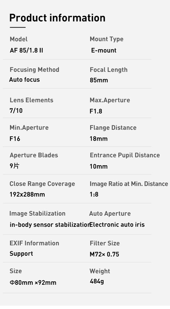 | Distancia focal | 85mm |