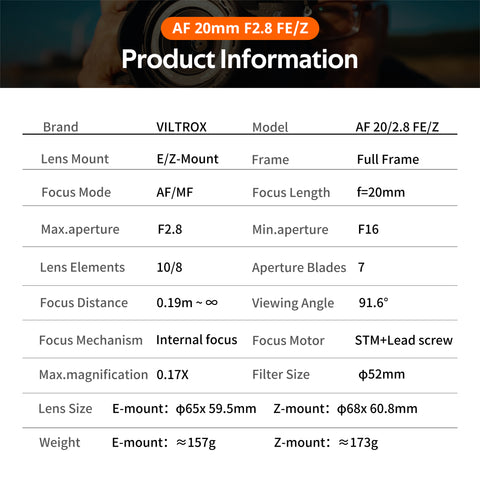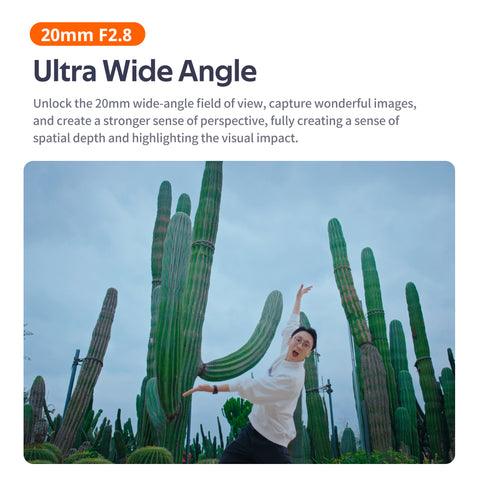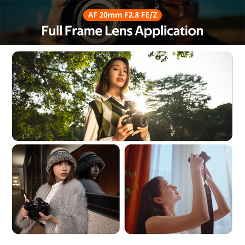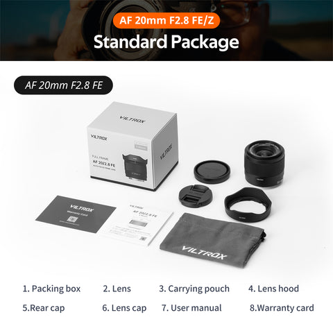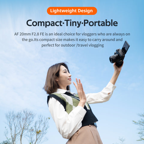 El Viltrox AF 20 / 2,8 FE es un objetivo con enfoque automático diseñado para cámaras Sony con montura E y Nikon Z. Gracias a sus 10 elementos distribuidos en 8 grupos, destaca por su excelente rendimiento óptico. Su distancia mínima de enfoque de aproximadamente 0,19 m permite obtener bonitas tomas en primer plano. Además, el silencioso motor de enfoque STM controla con precisión la posición móvil y ofrece un enfoque preciso y fluido. ¡Una opción excelente para fotografiar retratos, paisajes, primeros planos y vlogs!