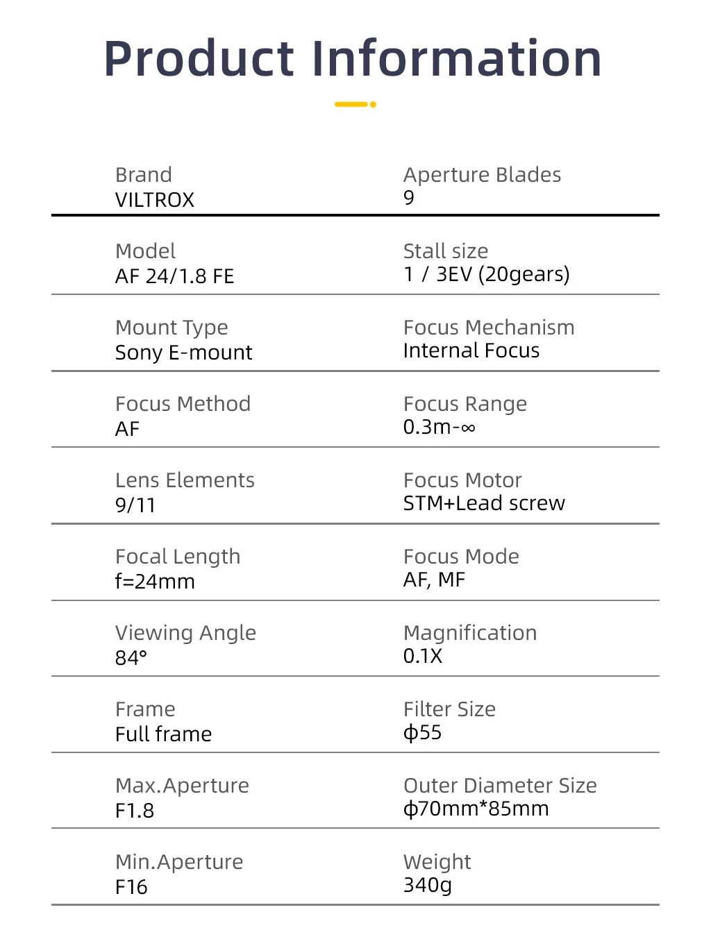 Viltrox AF 24mm F1.8 FE Mount Auto Focus Sony Full Frame Wide-angle Prime Lens