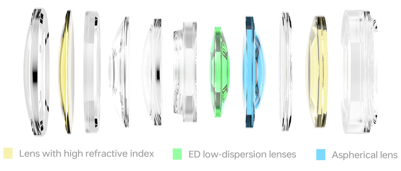 y 2 elementos de alto índice de refracción que aumentan la nitidez y la claridad de la imagen.