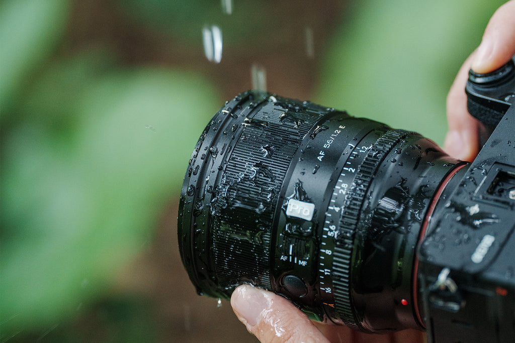 El cuerpo totalmente metálico, fabricado en aleación de aluminio forjado de alta resistencia, ofrece una rigidez excepcional y un tacto de primera calidad. El acabado negro mate es resistente a los arañazos, mientras que las juntas protegen contra el polvo, las salpicaduras de agua y la humedad. El elemento frontal del objetivo cuenta con un revestimiento resistente al agua y a las manchas, lo que garantiza un rendimiento fiable en cualquier lugar.