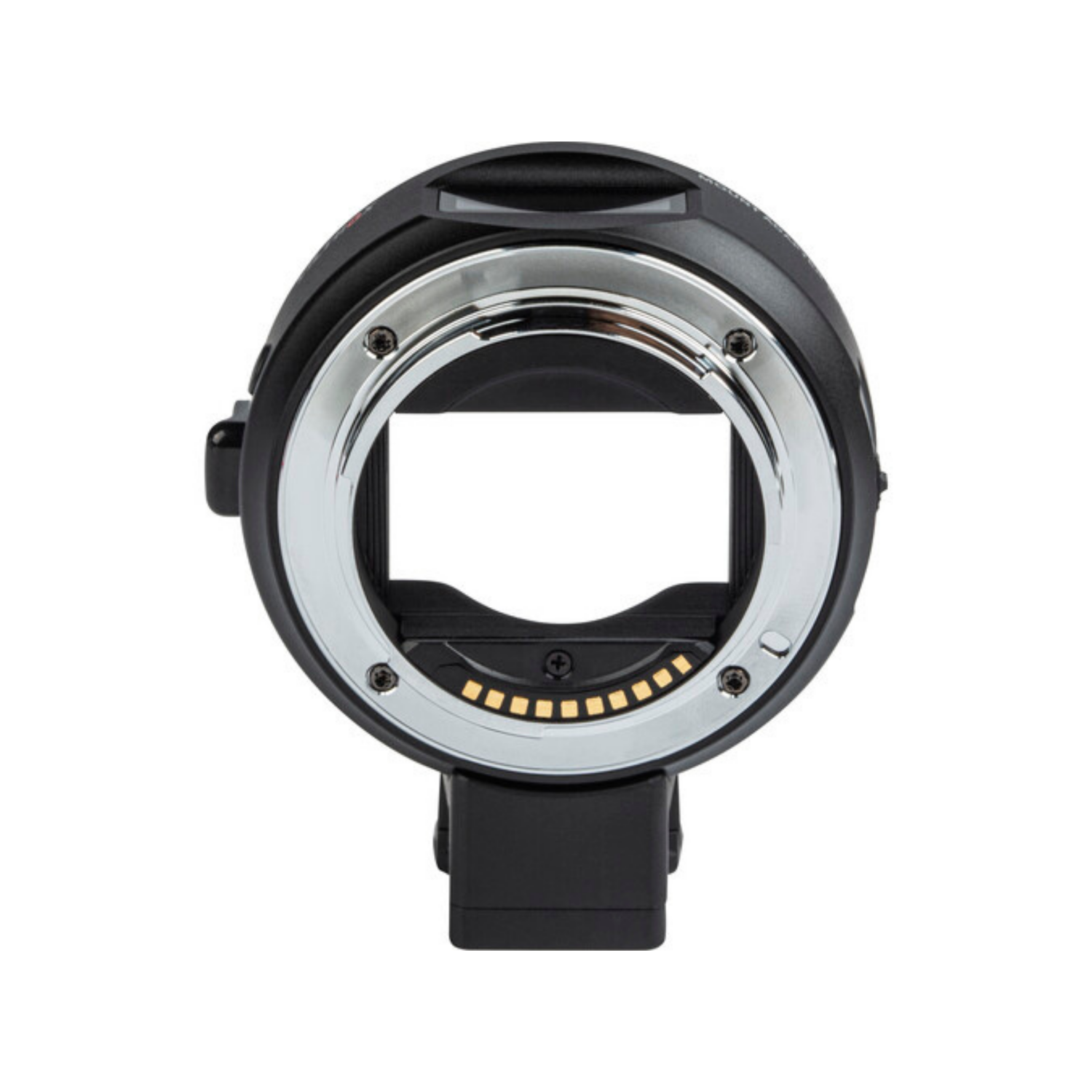 El adaptador es compatible con la comunicación electrónica completa para la transmisión de datos EXIF, el enfoque automático con detección de fase y de contraste, y la estabilización de imagen de los objetivos Canon. El interruptor integrado en el tubo del adaptador permite seleccionar el modo de enfoque automático sin necesidad de navegar por el menú de la cámara.