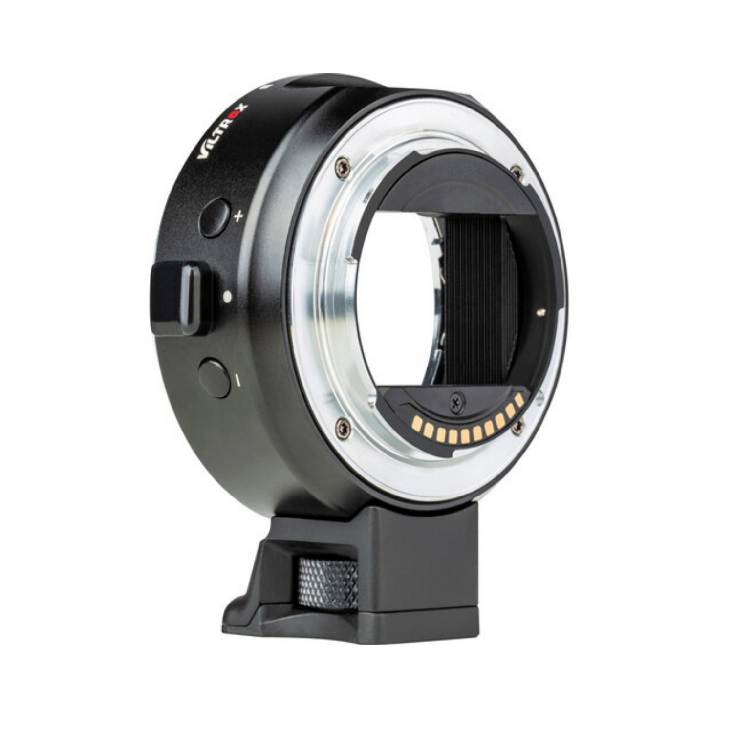 El adaptador Mark V EF-E5 de Viltrox, que permite acoplar objetivos Canon EF con autofoco a cámaras Sony con montura E, está diseñado para permitir el uso de objetivos Canon con montura EF y autofoco en cámaras Sony con montura E. La pantalla OLED programable puede mostrar la distancia focal, la apertura, el modo de apertura y el modo de ajuste. El ajuste permite la configuración manual para objetivos incompatibles, mientras que los botones más y menos permiten ajustar los parámetros de enfoque.