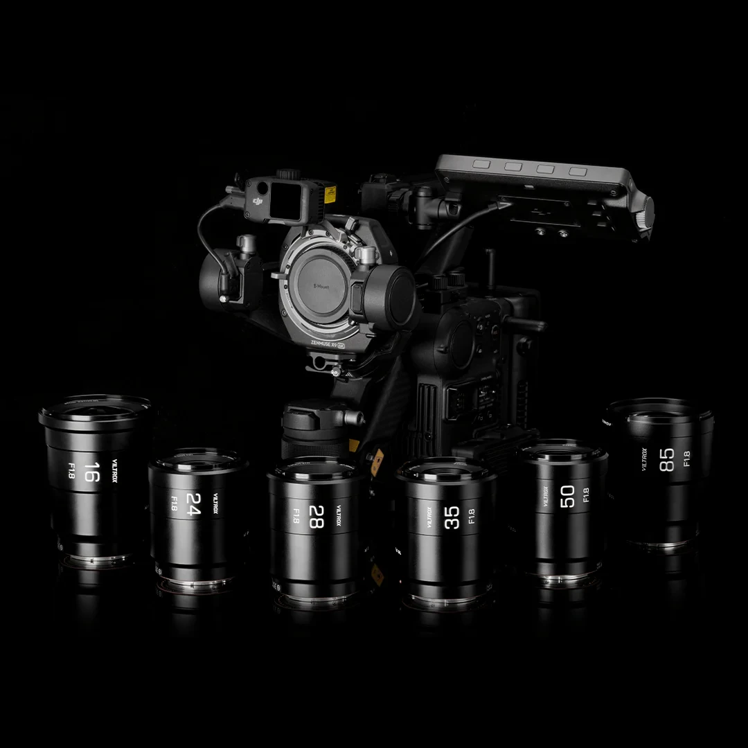 El conjunto de objetivos Viltrox Raze, diseñado para el sistema de cámaras Ronin 4D, ofrece objetivos de formato completo con autofoco y montura DL, con una apertura de F1.8, que cubren distancias focales de 16/24/28/35/50/85 mm.