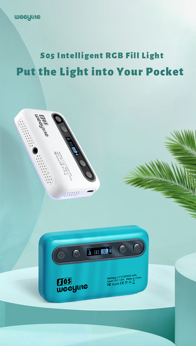 La Weeylite S05 es una luz de relleno portátil de bolsillo. Cuenta con diodos LED