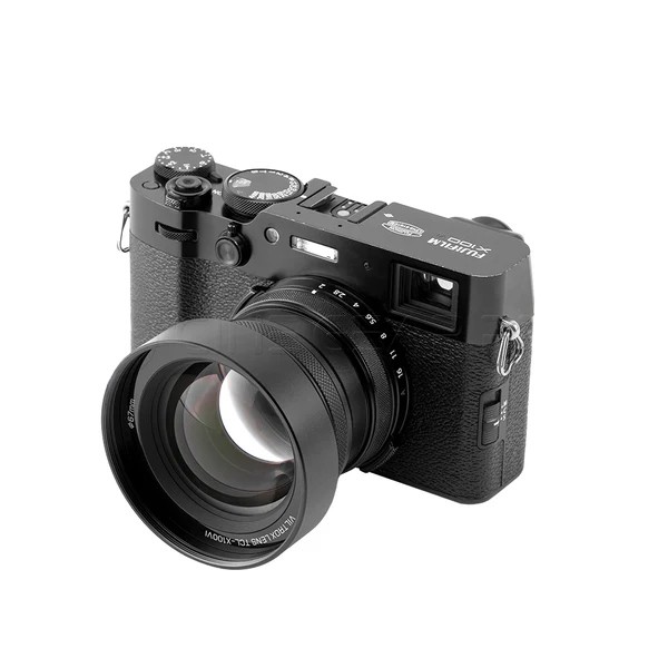 El TCL-X100VI es un adaptador de teleobjetivo diseñado para las cámaras Fujifilm X100. Cuenta con una construcción óptica de 4 grupos y 5 elementos, y se acopla a la parte delantera de las cámaras de la serie X100.