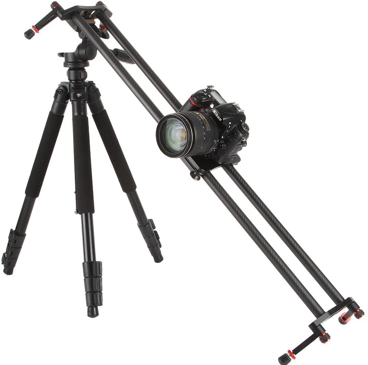 El slider para cámara Viltrox VC-80 de 80 cm está fabricado en material compuesto de carbono y, a pesar de su reducido peso, soporta equipos de cámara de hasta 10 kg. La placa de la cámara está equipada con un tornillo de 3/8"-16; además, el slider cuenta con patas orientables y roscas de 1/4"-20 y 3/8"-16 en la parte inferior, así como de 1/4"-20 en la parte superior de los soportes, lo que ofrece amplias posibilidades de montaje. Por supuesto, incluye una bolsa de transporte.