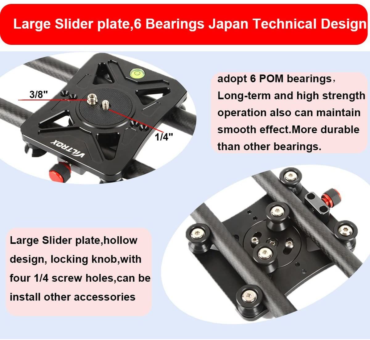 El slider para cámara Viltrox VC-80 de 80 cm está fabricado en material compuesto