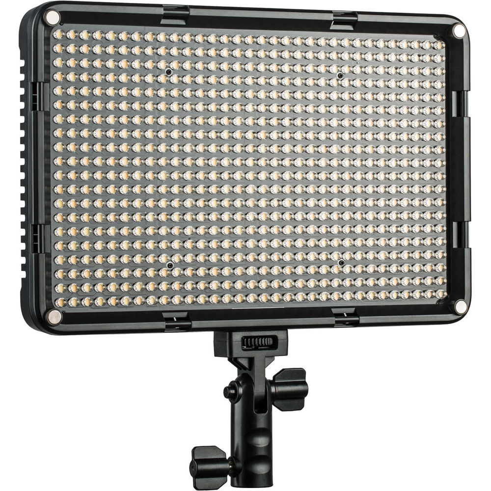 Luz LED bicolor de alta intensidad de 45 W con temperatura de color ajustable (en un rango de 3300-5600 K) e intensidad regulable (20-100 %; máx. 4800 lm, 4100 lx/1 m). Ofrece la posibilidad de control remoto inalámbrico (2,4 GHz, mando incluido) y la opción de alimentación mediante baterías recargables (NP-F550 / F570 / F960 / F970, batería no incluida) o fuente de alimentación externa (incluida en el paquete). La configuración de los parámetros se facilita gracias a una pantalla LCD de fácil lectura. Dimensiones: 286 x 190 x 32 mm; peso: 620 g.