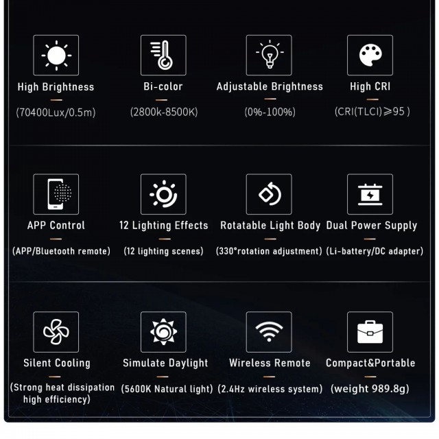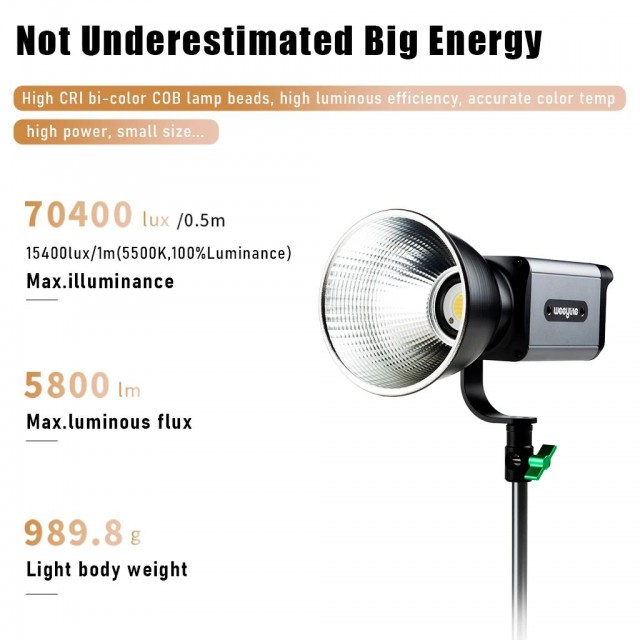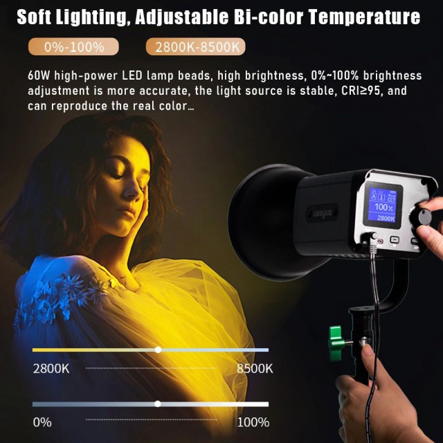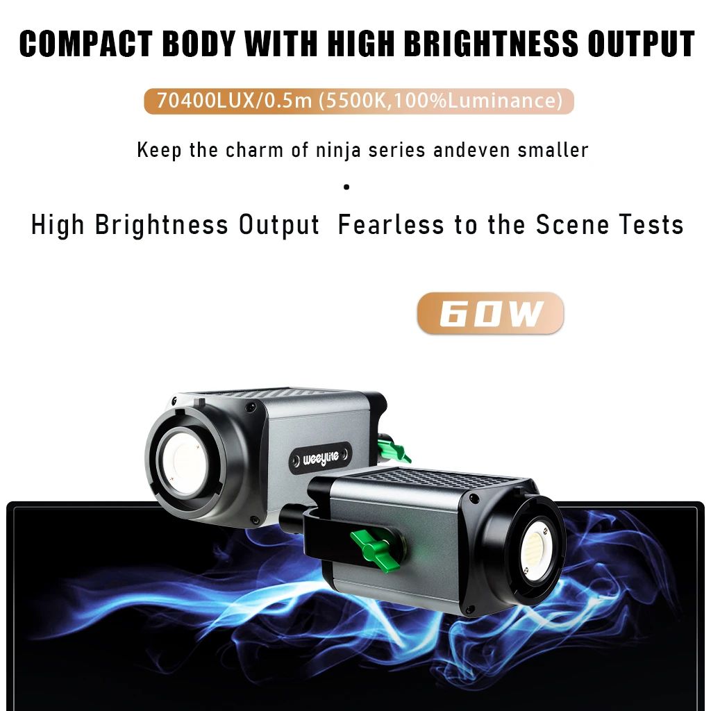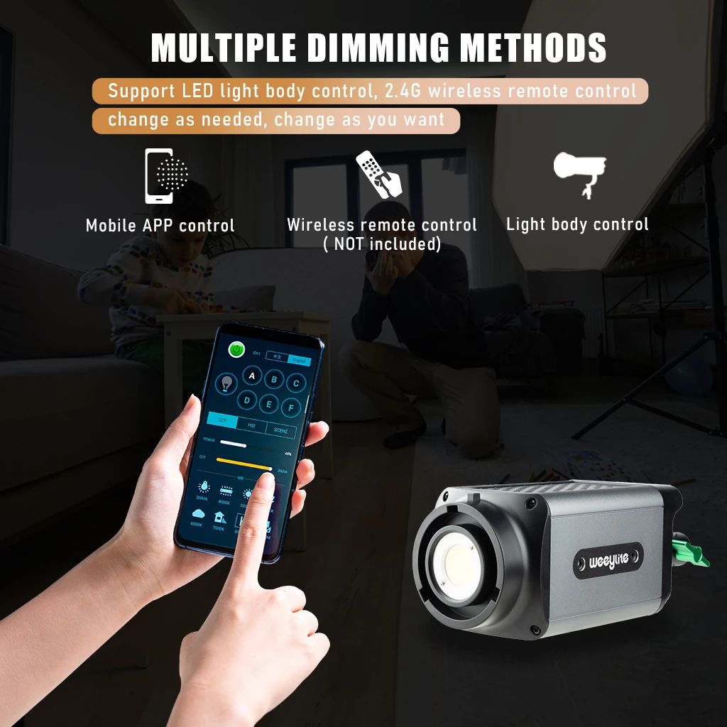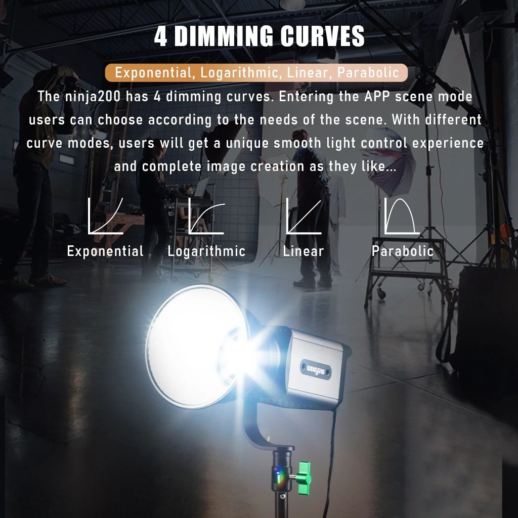 El reflector LED bicolor de estudio Weeylite Ninja 200 de 60 W utiliza la moderna tecnología LED COB para ofrecer un alto rendimiento lumínico y una buena reproducción cromática (≥95 RA). Ideal para fotografía de estudio, vídeo, etc. Ofrece una temperatura de color totalmente ajustable en un rango de 2800 K a 8500 K y una intensidad en un rango del 0 al 100…