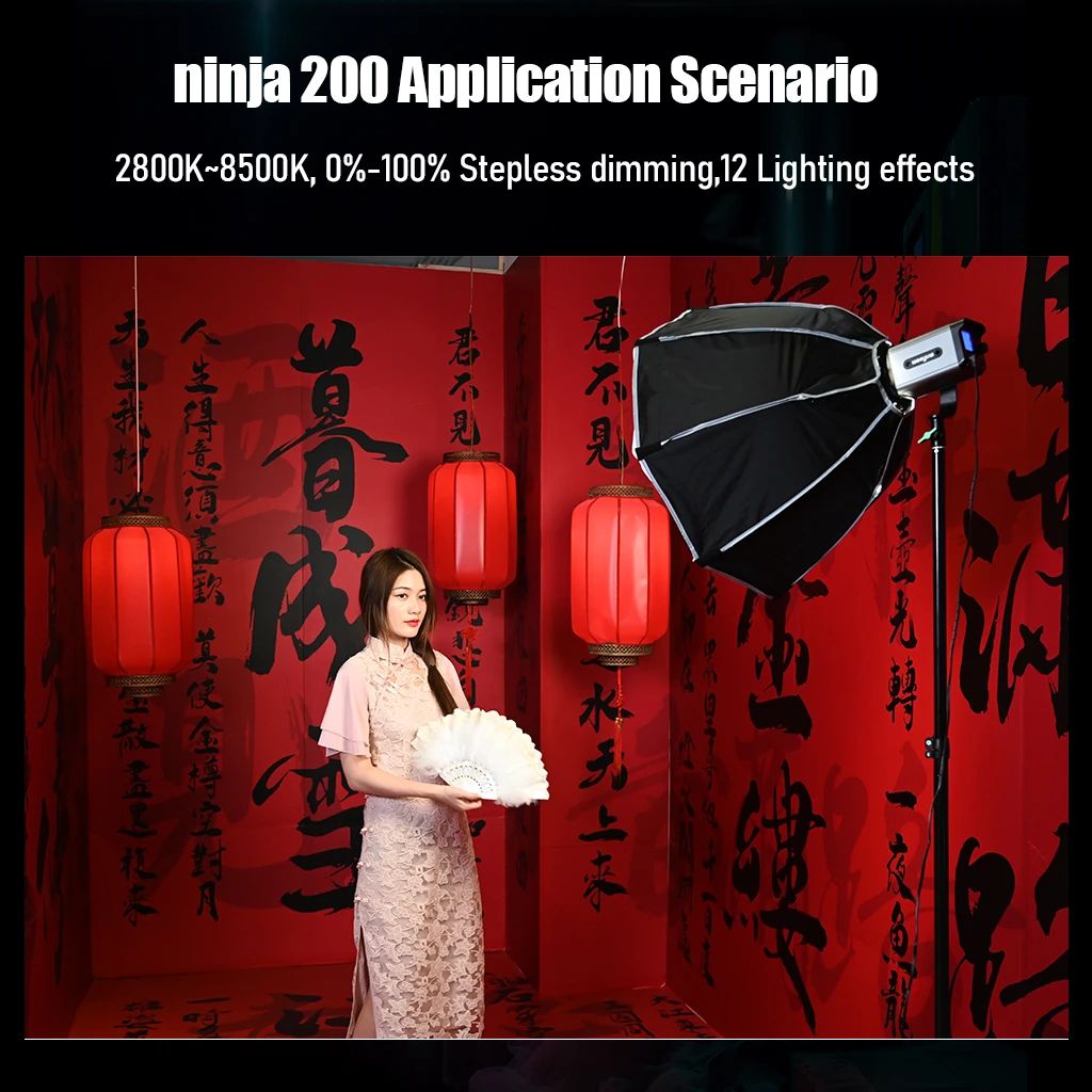 El reflector LED bicolor de estudio Weeylite Ninja 200 de 60 W utiliza la moderna tecnología LED COB para ofrecer un alto rendimiento lumínico y una buena reproducción cromática (≥95 RA). Ideal para fotografía de estudio, vídeo, etc. Ofrece una temperatura de color totalmente ajustable en un rango de 2800 K a 8500 K y una intensidad en un rango del 0 al 100 % (máx. 5800 lm, 70 400 lx/0,5 m). Este modelo permite el control remoto mediante Bluetooth y una aplicación móvil; la alimentación corre a cargo de baterías NP-960/970 (no incluidas) o de una fuente de alimentación externa (incluida en el paquete). Dimensiones: 175 x 92 x 85 mm; peso: 990 g. Una variante menos potente, pero más fácil de transportar, del popular modelo Ninja 400.