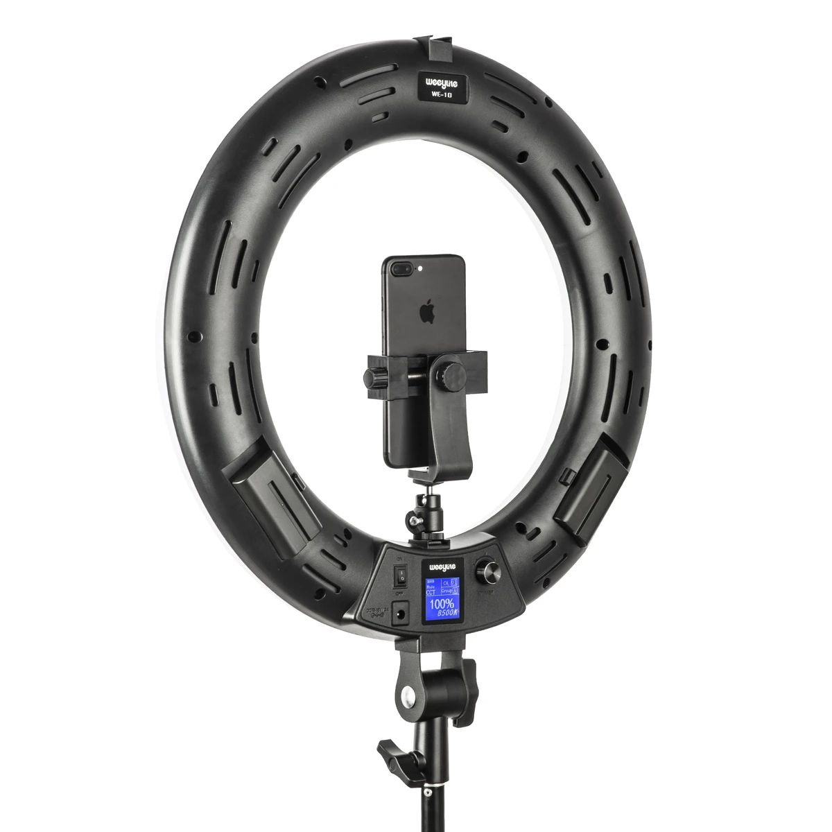 ¡El foco de efectos profesional Weeylite WE-10, con un anillo LED RGB de 18 pulgadas, ofrece 17 efectos de luz y la posibilidad de controlarlo a distancia mediante una aplicación móvil!