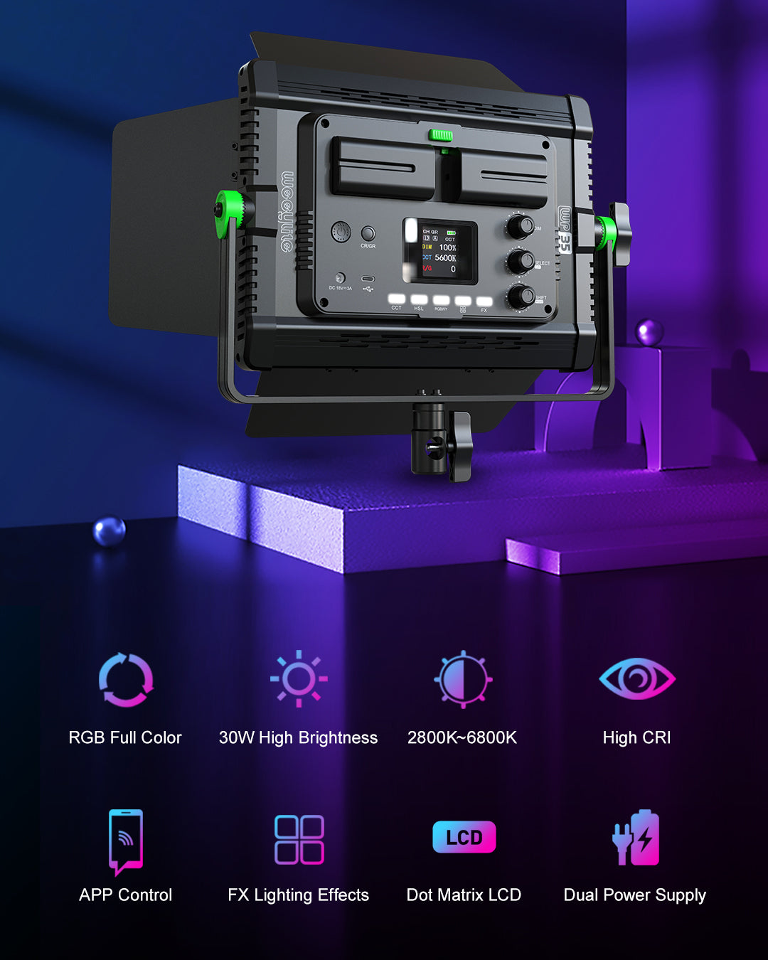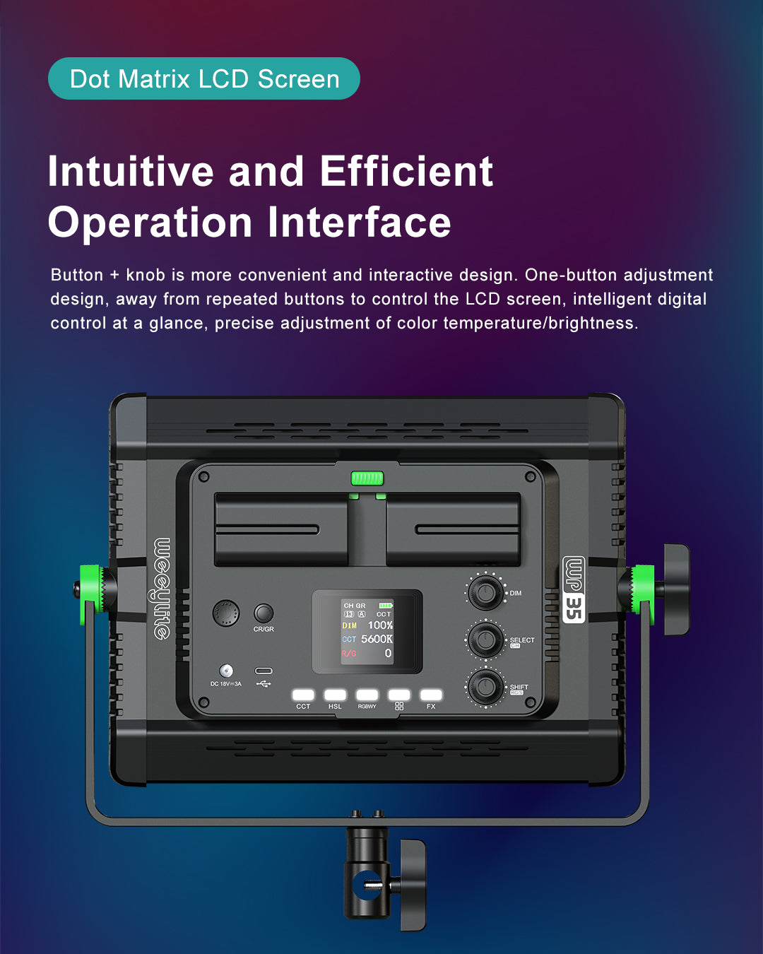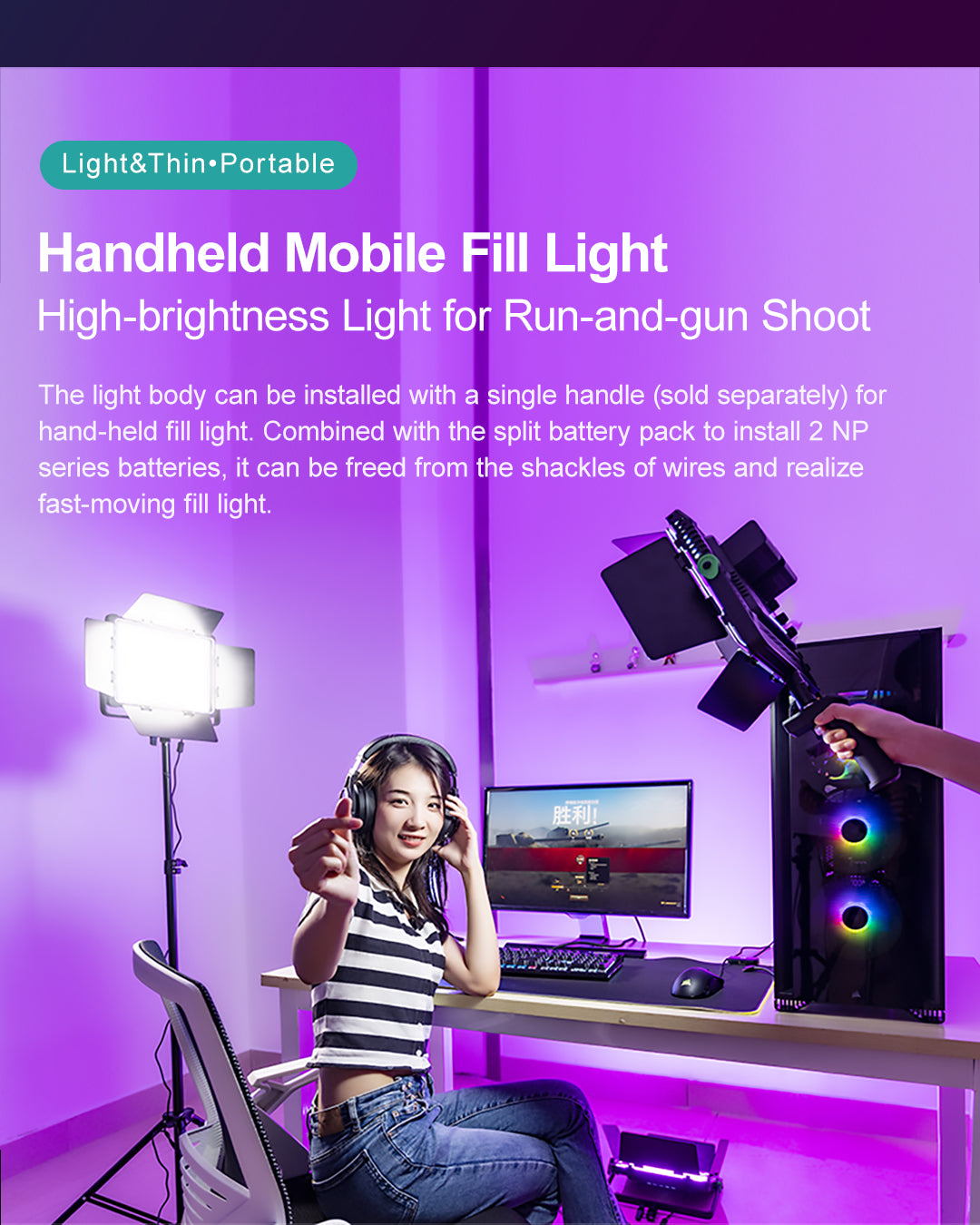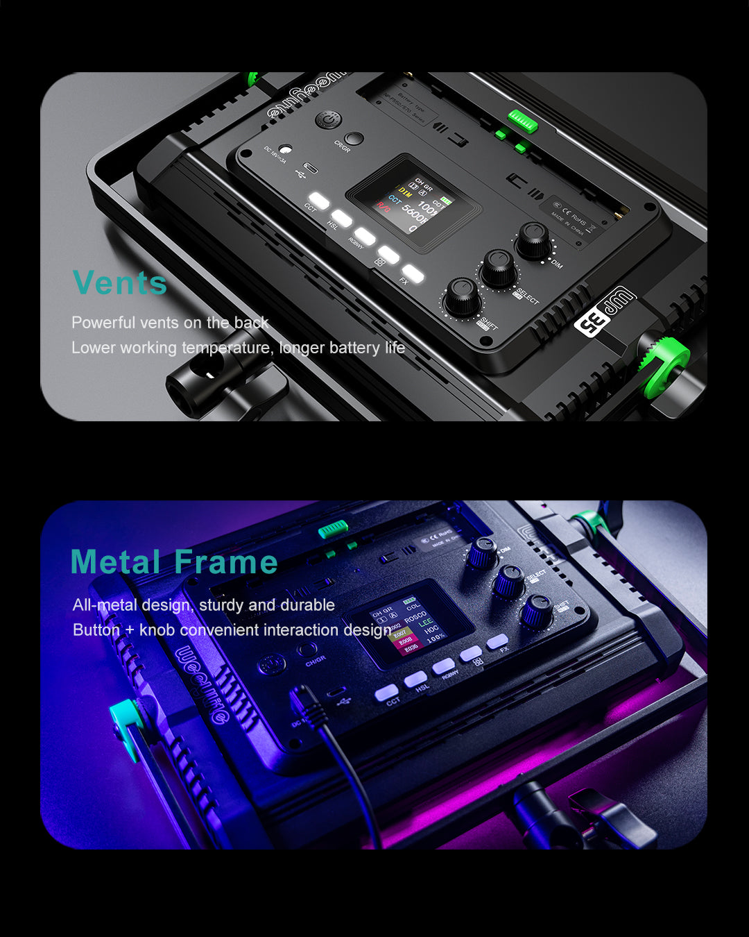 El WP35 es una luz de relleno fotográfica profesional con lámparas de alta calidad, un índice de reproducción cromática elevado y RGB optimizado, bajo consumo energético, temperatura de color estable y una relación entre temperatura de color y luminosidad que se puede ajustar a voluntad. Es fácil de transportar y resulta ideal para fotografiar en diversos escenarios, por lo que puede satisfacer tus necesidades fotográficas y de grabación en múltiples situaciones.