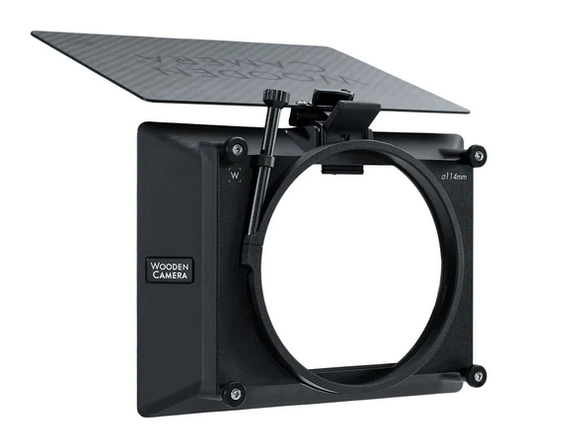 La visera superior incluida está fabricada en fibra de carbono ligera y cubre la parte delantera del mattebox, lo que resulta ideal para proteger el objetivo entre tomas. La visera se puede retirar aflojando el tornillo superior con el pulgar, alineando la lengüeta con la ranura para la llave y tirando de ella.