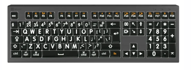 El teclado Logickeyboard XL Print ALBA Mac es un teclado plug-and-play de gran visibilidad
